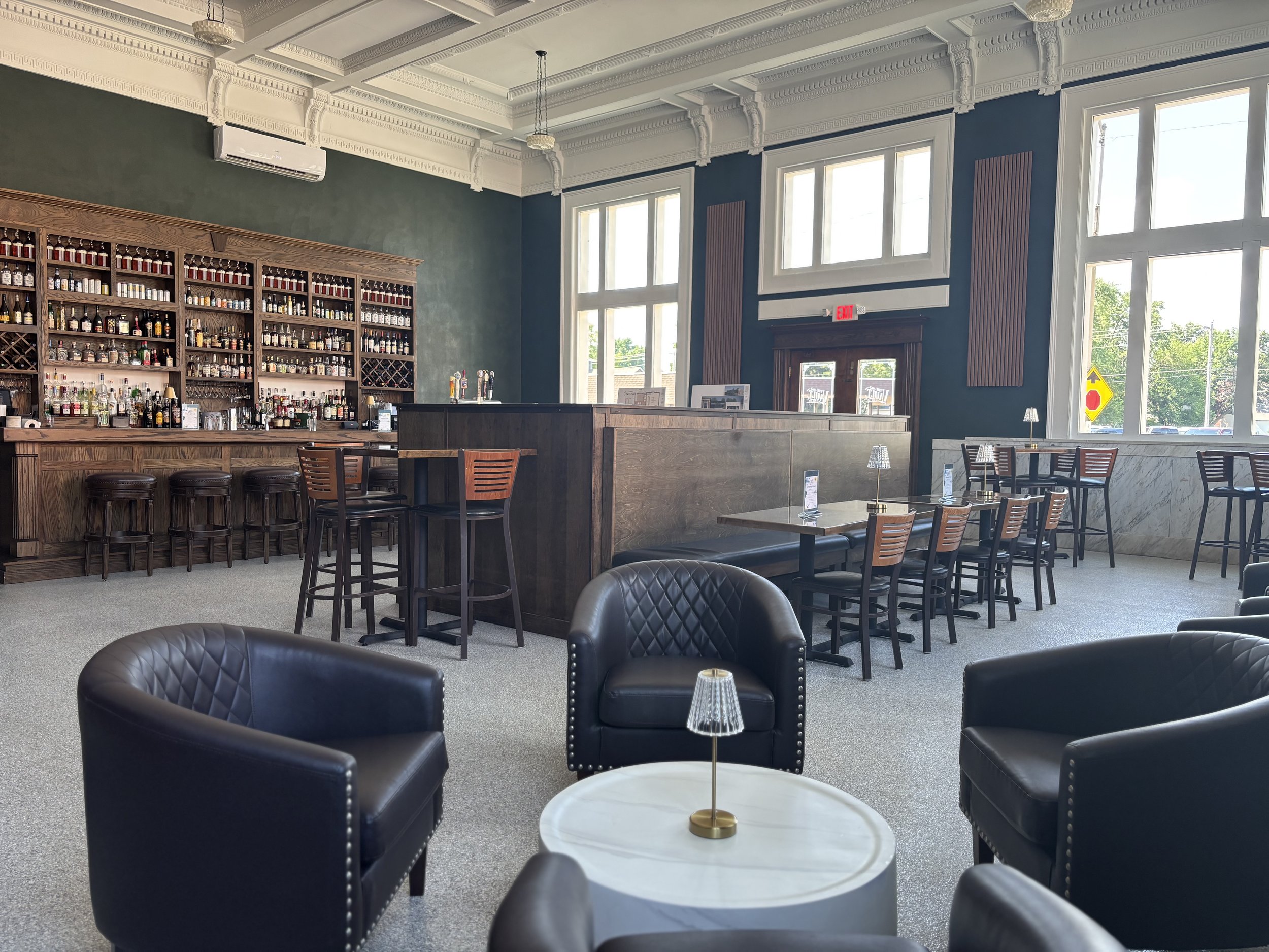 Step back into 1890 and immerse yourself in the beautiful First National Bank of Mascoutah Building as it once was. We have carefully restored and crafted a one of kind venue in downtown Mascoutah, IL that is sure to impress. Experience unparalleled ambiance where every detail is curated for the discerning patron seeking an unforgettable evening. We will strive to provide an incredible value and level of service exceeding your expectations. Our bourbon, wine, cocktail, and craft beer selection is unmatched in Mascoutah, all while offering the classic staples most often requested.